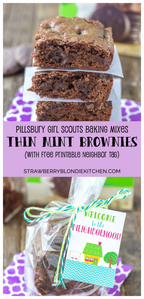 The Girl Scout Cookies you know and love now mixed up with the Pillsbury mixes you stock your pantry with. These Pillsbury™ Girl Scout™ Baking Mixes feature Caramel & Coconut Blondies and Thin Mints® Brownies. All I can say is, Pillsbury nailed it. Now you can enjoy the flavor of Girl Scout cookies all year long and share with your new neighbors with our free printable “Welcome to the Neighborhood” tags.